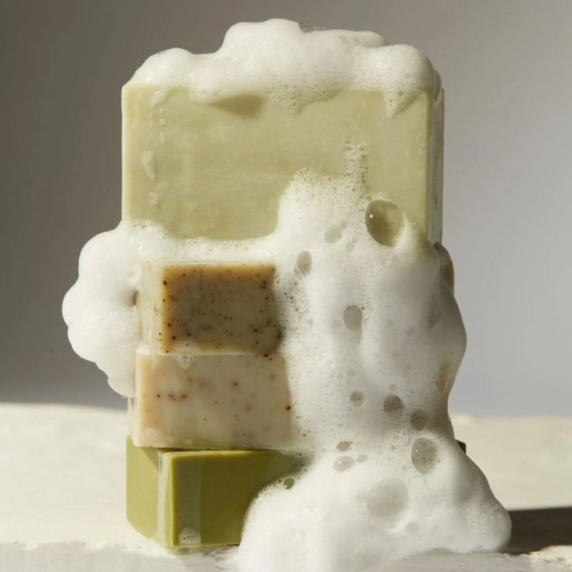 - Humedeça o sabonete e esfregue entre as mãos ou diretamente sobre a pele.